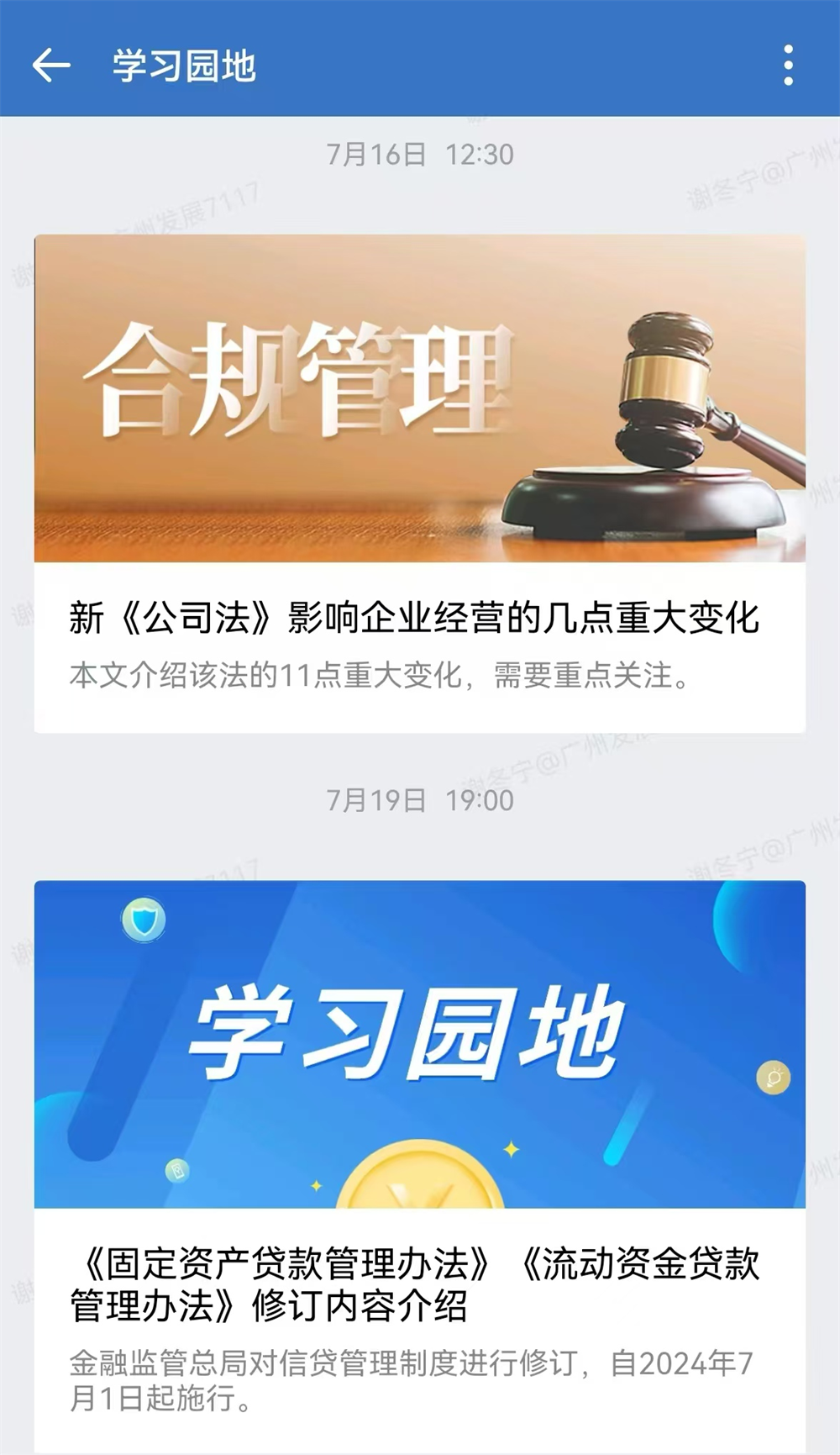 二是深入开展全员普法。开展法律法规合规义务识别,建立各岗位法律法规义务清单;建立法务合规月报制度,开辟学习园地法治宣传专栏,开设周未大讲堂,举办专题讲座,及时向员工宣传新的法律法规和监管政策;利用特殊时段和重要节点开展法治教育宣传,将学法用法融合于日常工作,形成全员学法用法的常态化机制。